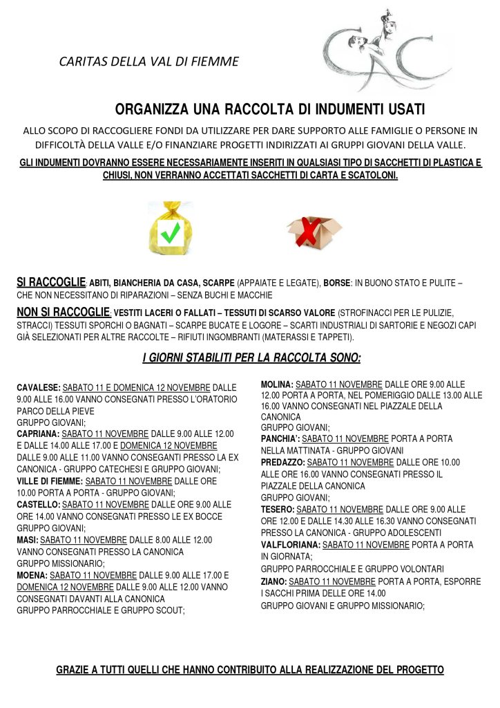 CARITAS RACCOLTA DI INDUMENTI USATI – 11 novembre 2023