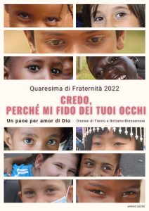 La campagna “Un pane per amor di Dio” si ripete ogni Quaresima dal 1962, è stata lanciata dai vescovi del Triveneto in risposta alla coscienza della fame nel mondo. Le offerte raccolte il giovedì santo vengono divise fra tutti i missionari trentini sparsi per il mondo. Vanno versate al Centro Missionario indicando in causale “Quaresima 2021”.