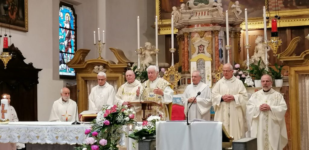 Una grande festa per una grande grazia fatta dal Signore ai due sacerdoti, festeggiati alla presenza del Coro Parrocchiale e di altri confratelli che hanno voluto presenziare alla Celebrazione Eucaristica in segno di vicinanza ed affetto. Nel saluto iniziale, il parroco Don Albino ha ricordato i vari paesi del Trentino dove i due hanno svolto il loro lungo servizio sacerdotale; al termine della santa Messa presieduta, da Don Carlo, è stato regalato ai due festeggiati un pensiero da parte della Comunità per questo significativo traguardo raggiunto.