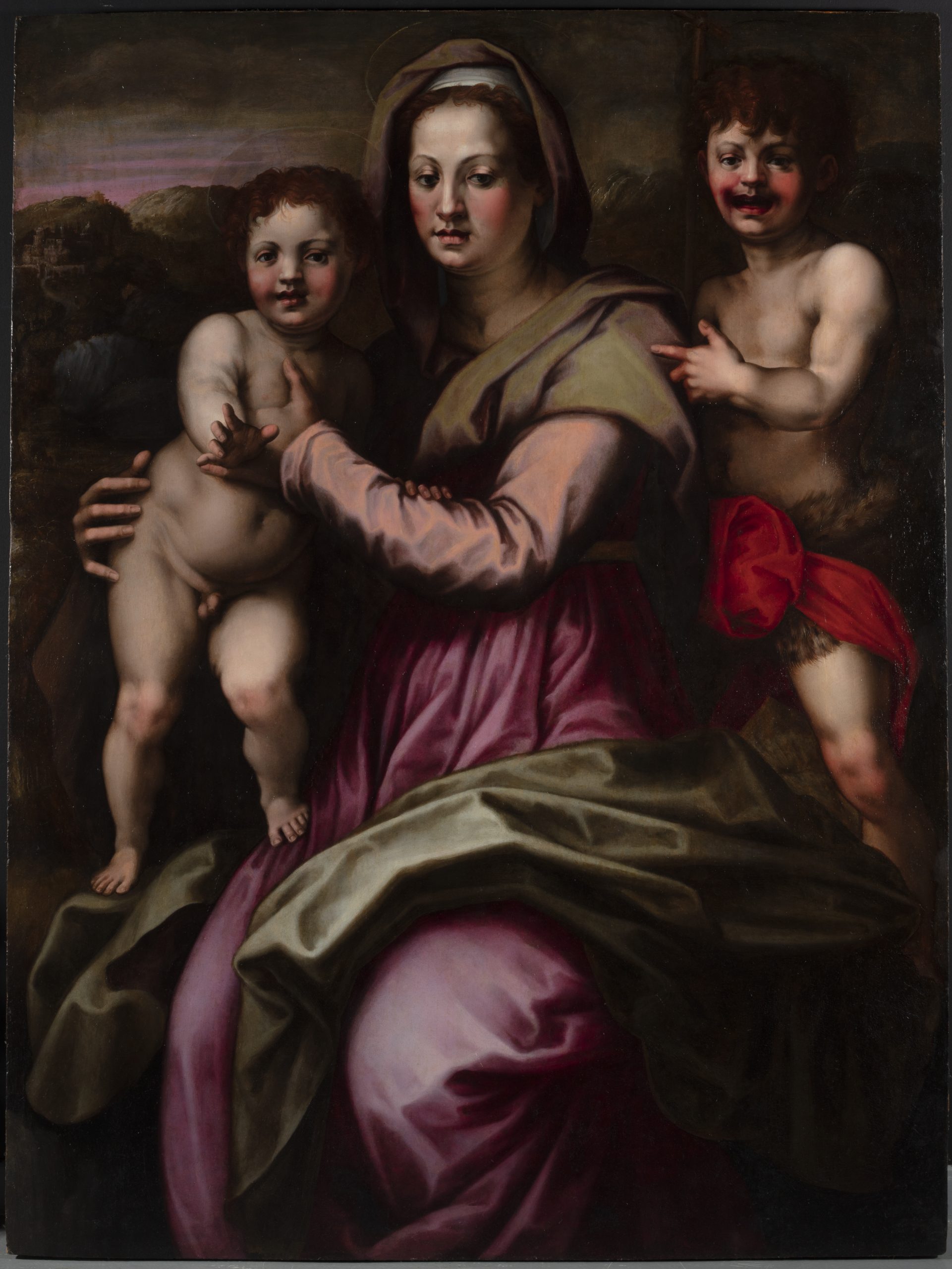 L’ opera raffigura la Madonna con Gesù bambino e San Giovannino e veniva ammirato per la perfezione del viso di San Giovanni, oltre che considerato all’epoca come una delle opere pittoriche più belle del periodo.