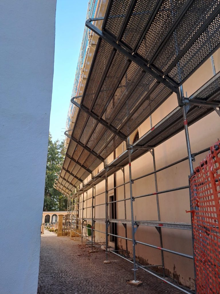 I lavori, iniziati a fine 2024, hanno visto la realizzazione del nuovo tetto, del nuovo lucernario, il rifacimento del pavimento in battuto veneziano ed il riuscito restauro della statua dell’Addolorata (momentaneamente esposta nella chiesa della Pieve).