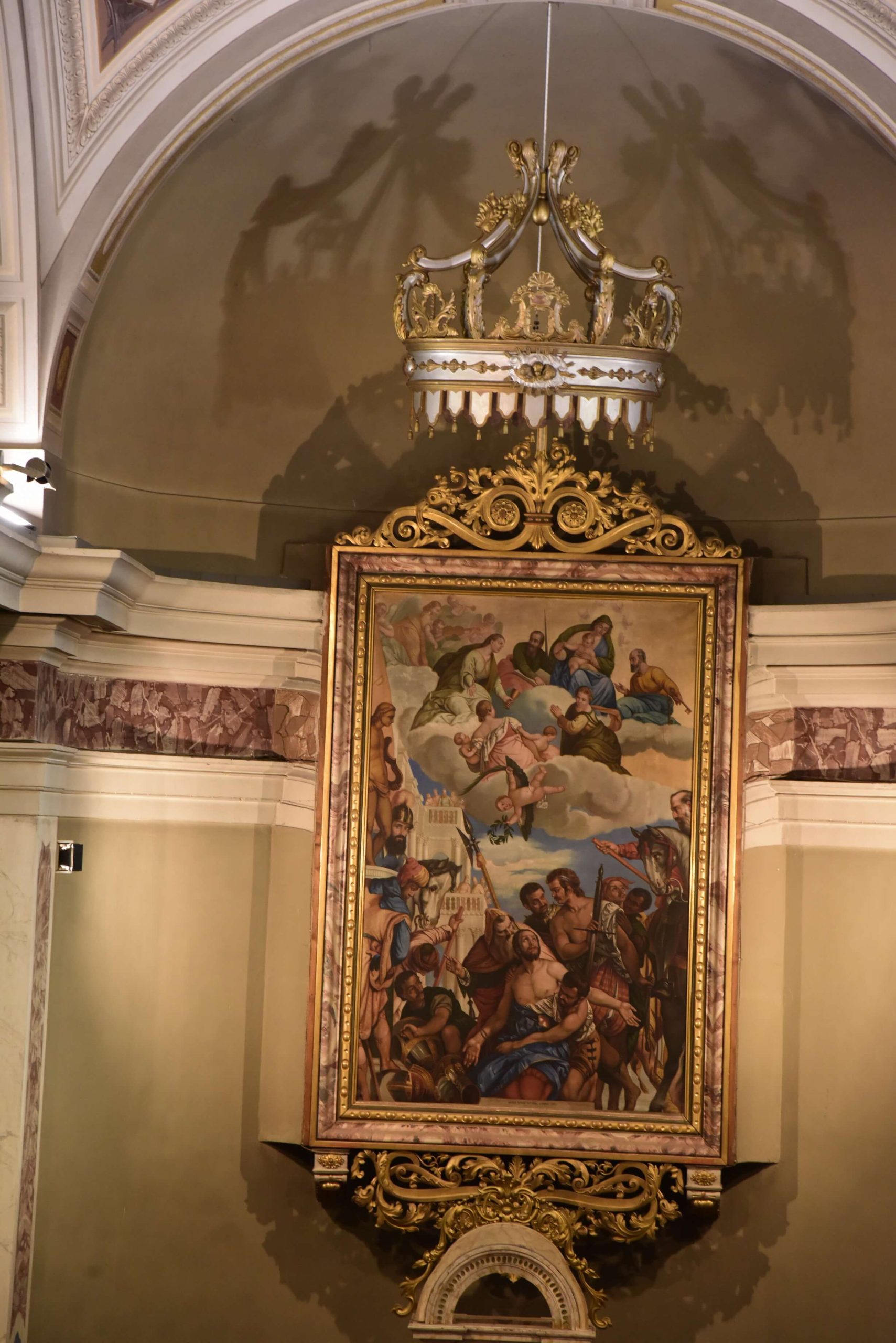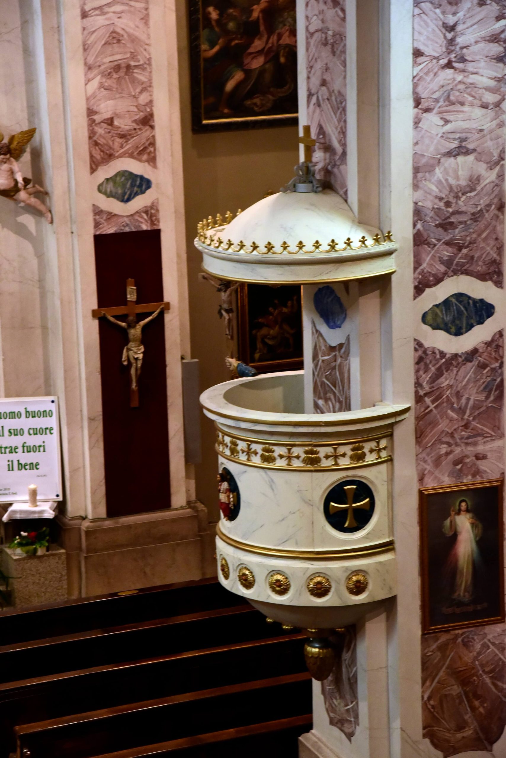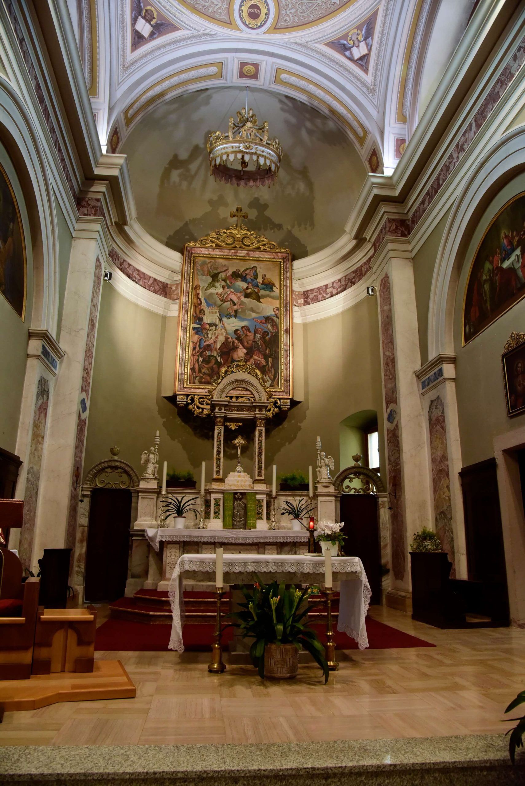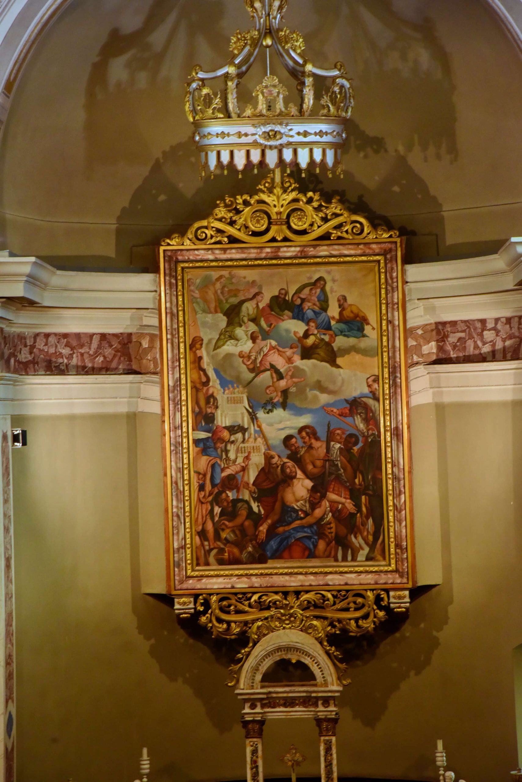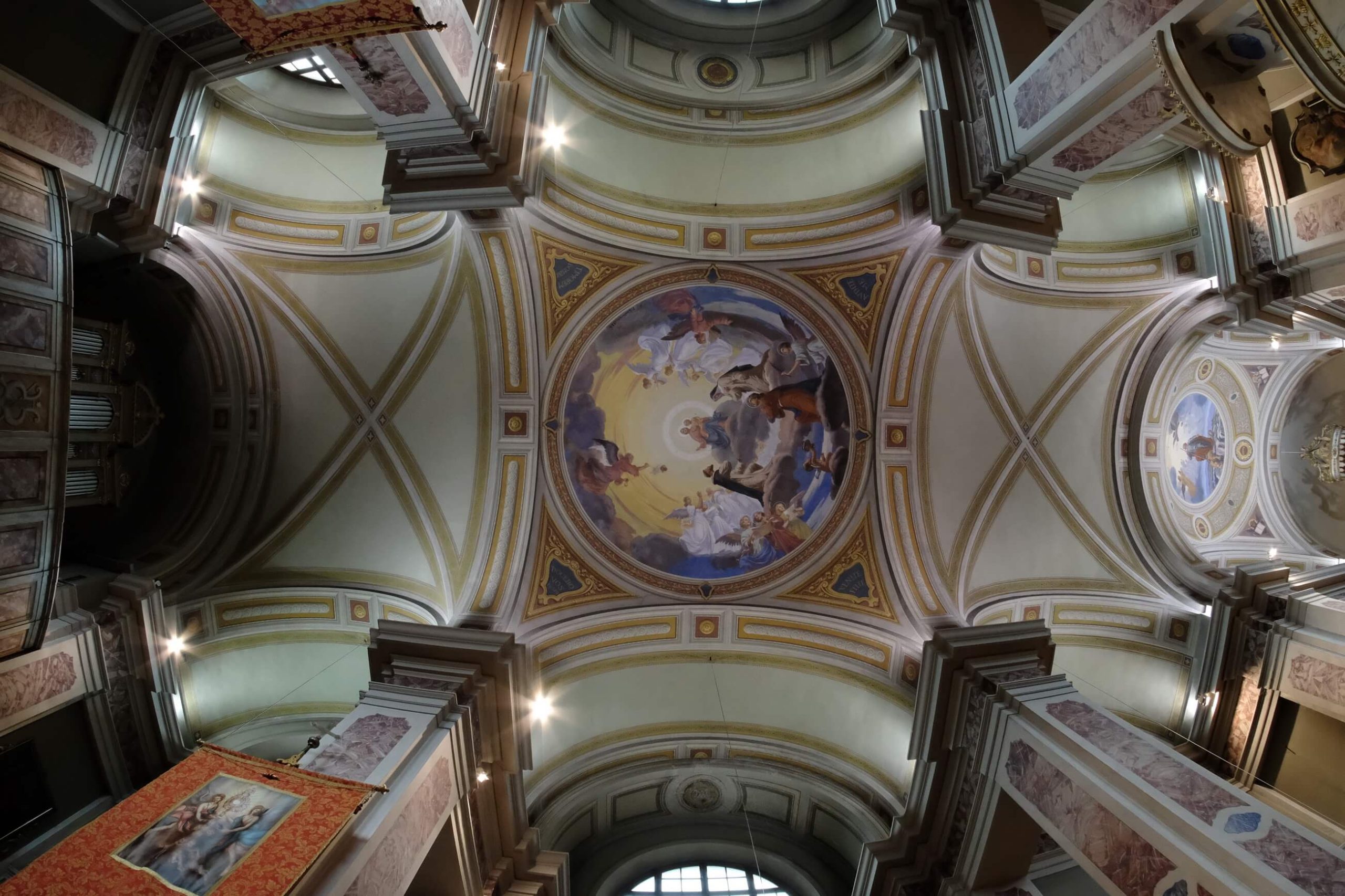 La fiancata nord, costruita a strapiombo sulla valle, vede emergere il corpo della cappella laterale, presso il quale è presente un affresco raffigurante San Cristoforo, patrono dei viaggiatori. Il lato sinistro, rivolto a mezzogiorno, reca due finestre lunettate, tra le quali si inserisce il portale secondario a luce archiacuta. All’interno la navata unica è interrotta all’altezza della terza campata da una cancellata in ferro battuto, oltre la quale si sviluppa il corpo della cappella laterale, aggiunta sul lato sinistro nel 1640 e inquadrata da un’arcata a pieno centro abbellita da quindici ovali con i Misteri del Rosario. Il presbiterio, introdotto dall’arco santo archiacuto e rialzato su un gradino, si conclude in un’abside poligonale.
