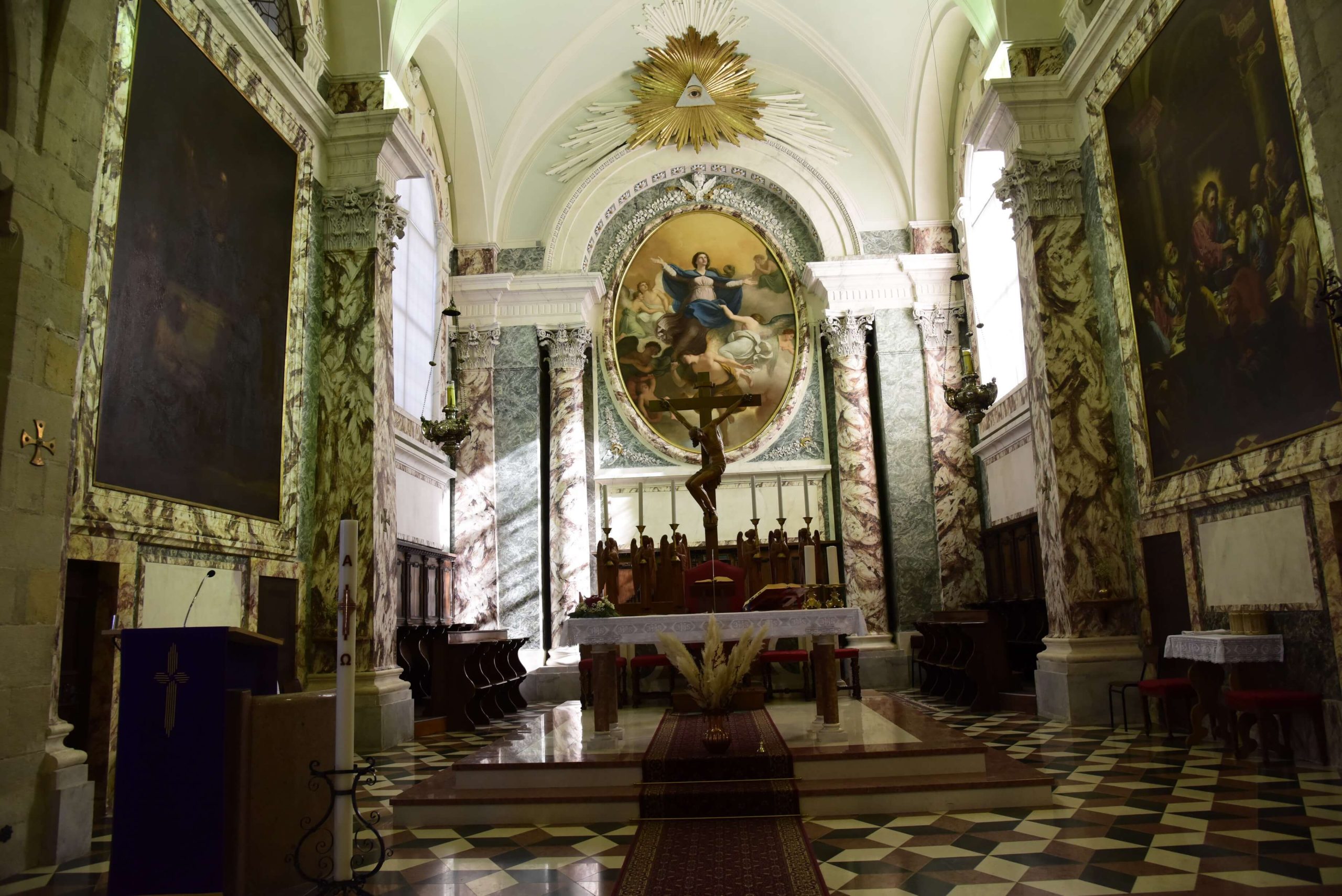 Tra il 1805 e il 1808 venne realizzata la nuova abside neoclassica su progetto del pittore Cristoforo Unterperger di Cavalese. Parte dell’arredo fu acquistato dalla chiesa del soppresso convento di San Marco a Trento, mentre l’altare attuale è una rimanenza di quello realizzato dopo il voto comunitario del 1944.