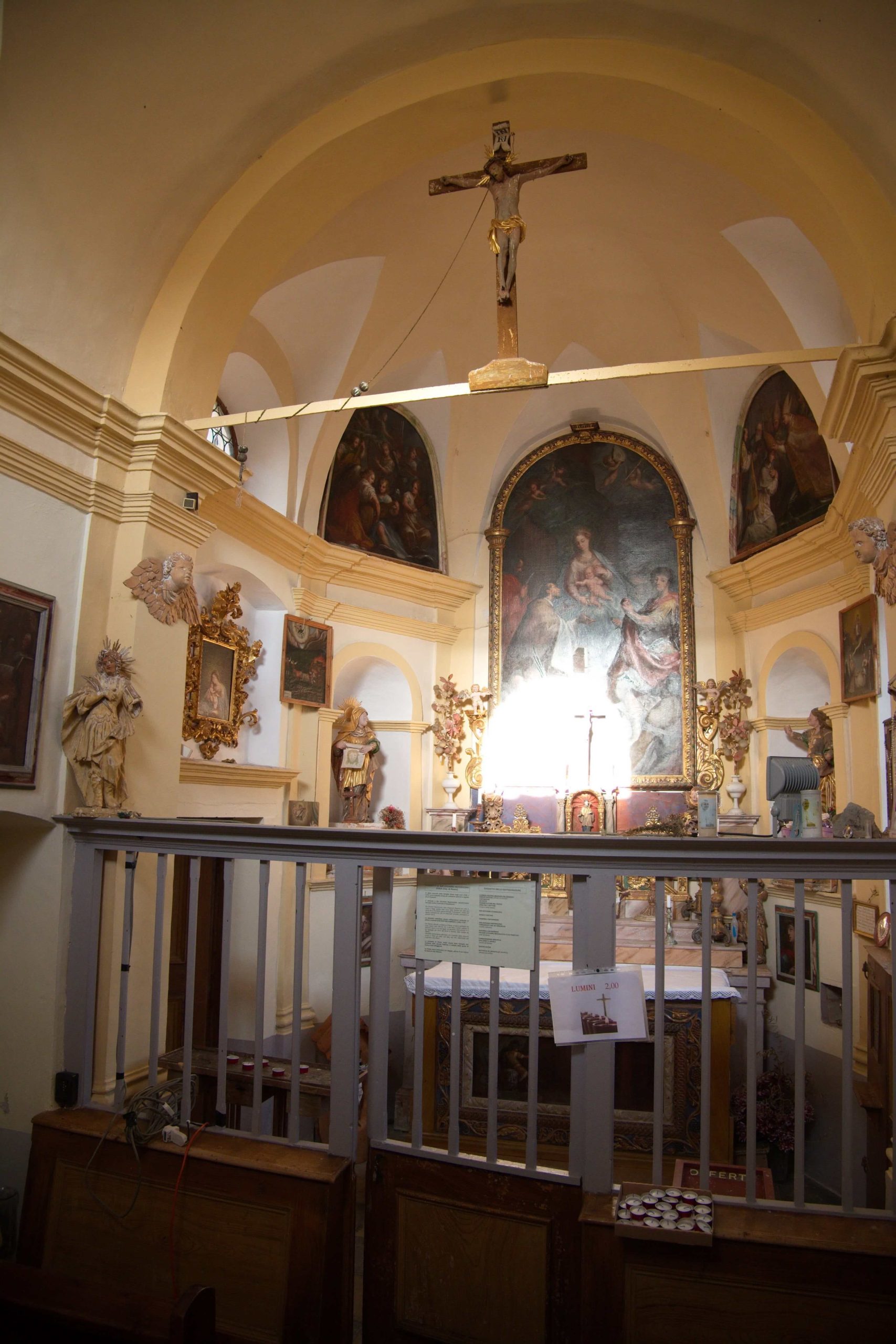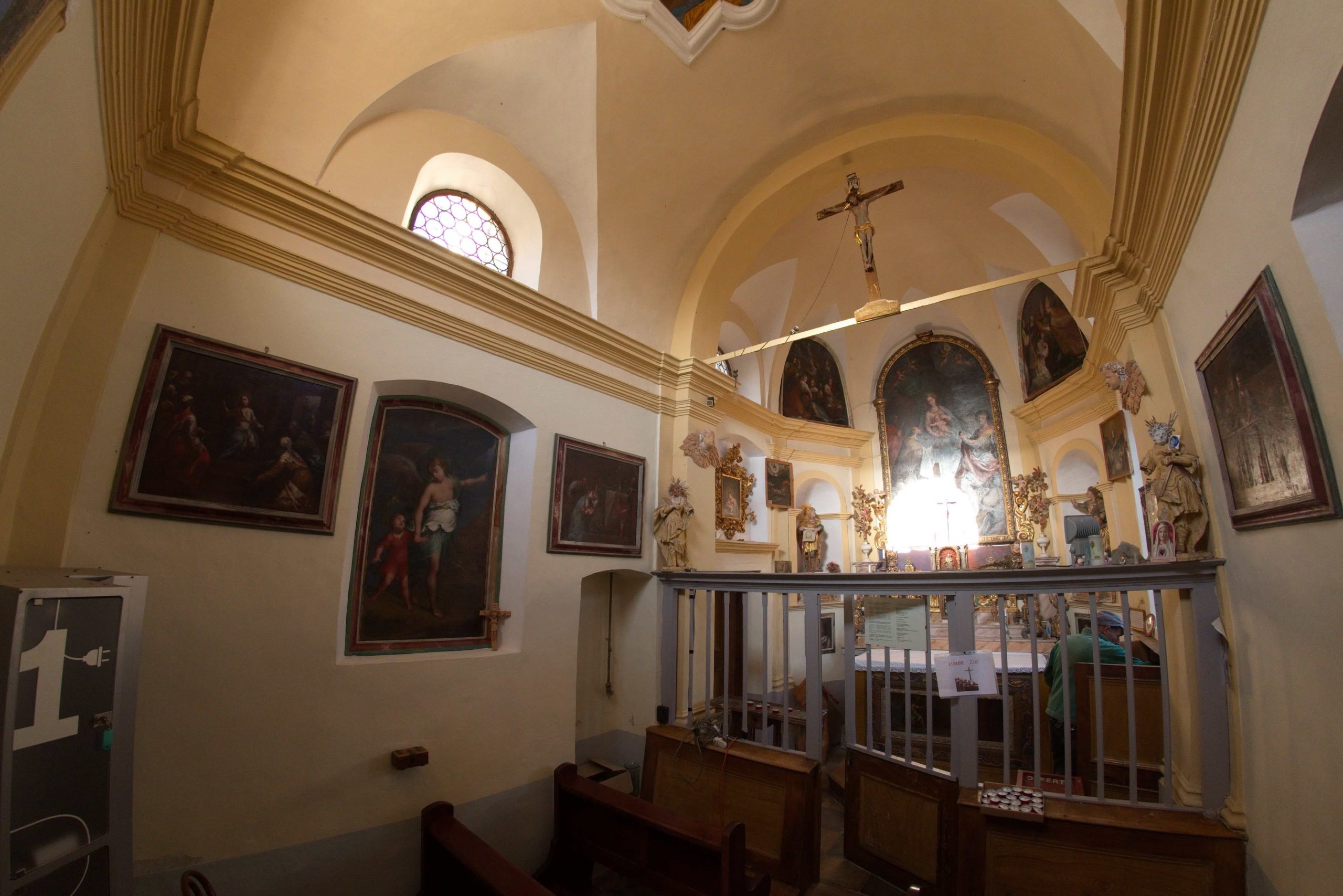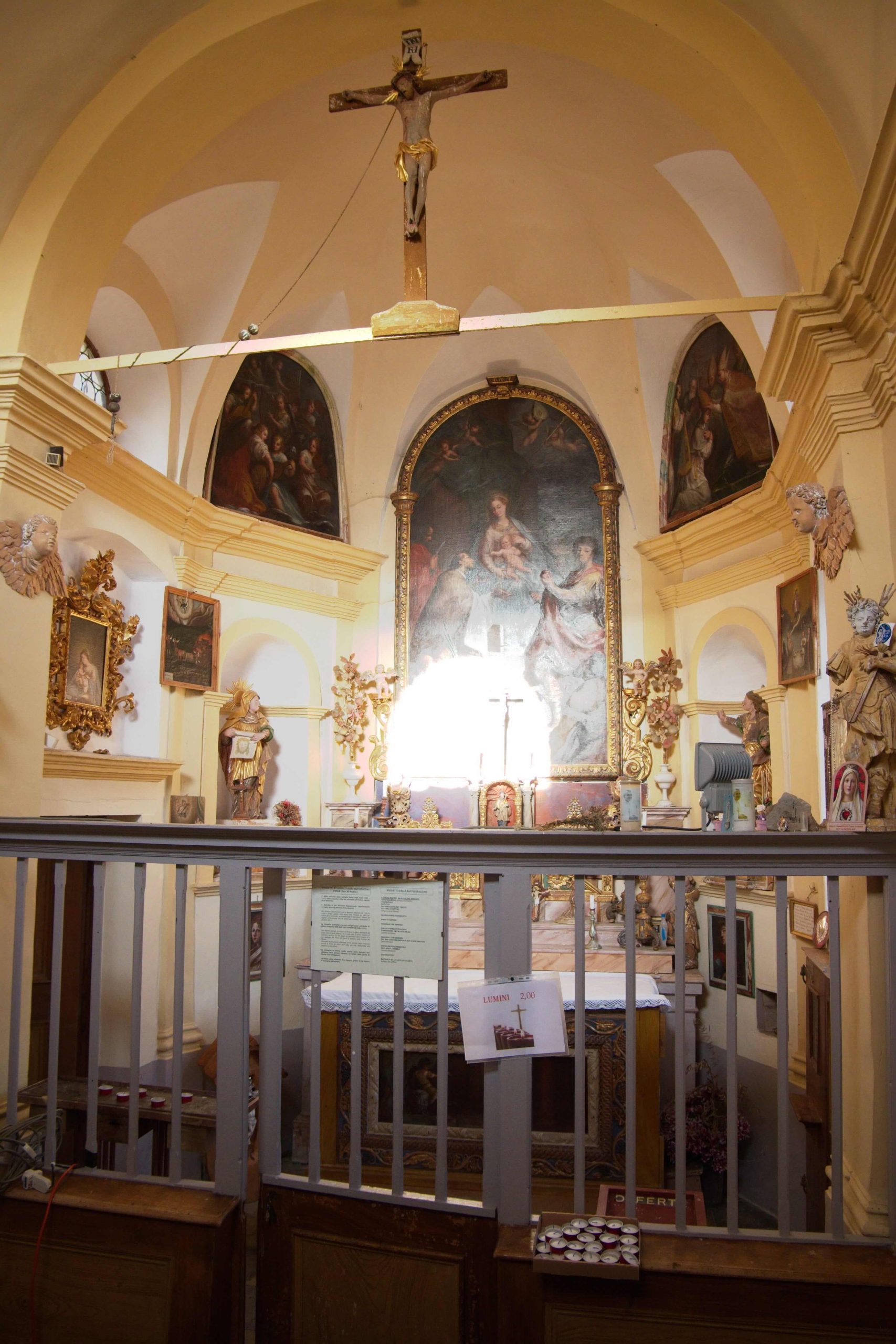 Con orientamento a nord-est, il piccolo edificio ha facciata a due spioventi caratterizzata dalle aperture sovrapposte del portale con architrave, di una finestra con lunetta, di una monofora centinata e di una losanga. Accanto al portale si dispongono ulteriori due finestre rettangolari chiuse da inferriate. Le fiancate, lisce, recano ciascuna due finestre con lunetta. Il campanile, concluso da cella campanaria a due ordini di monofore e bifore e da una copertura piramidale in scandole, è posto sul lato sinistro e si inserisce tra le strutture della chiesa e della sacrestia. L’interno si sviluppa a navata unica voltata a botte unghiata; il presbiterio è raccolto nell’abside poligonale, rialzata su un gradino.