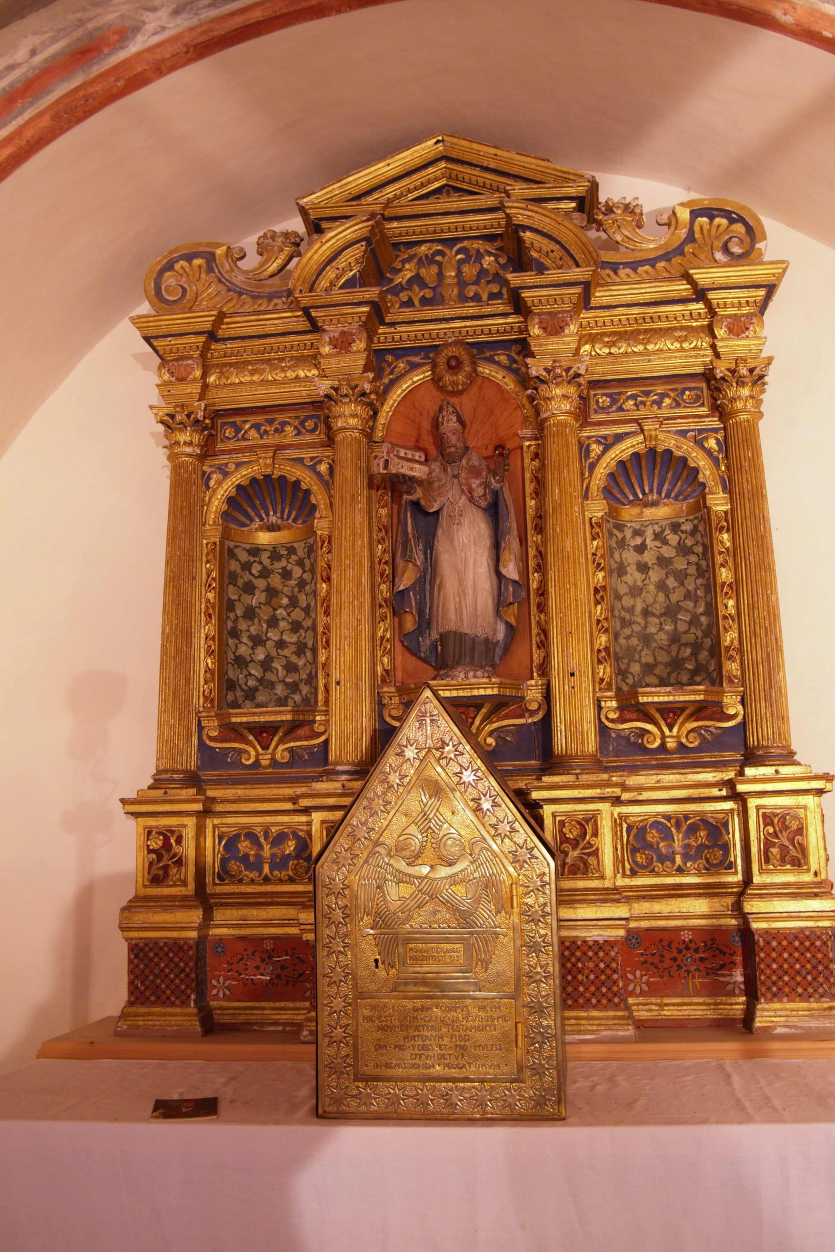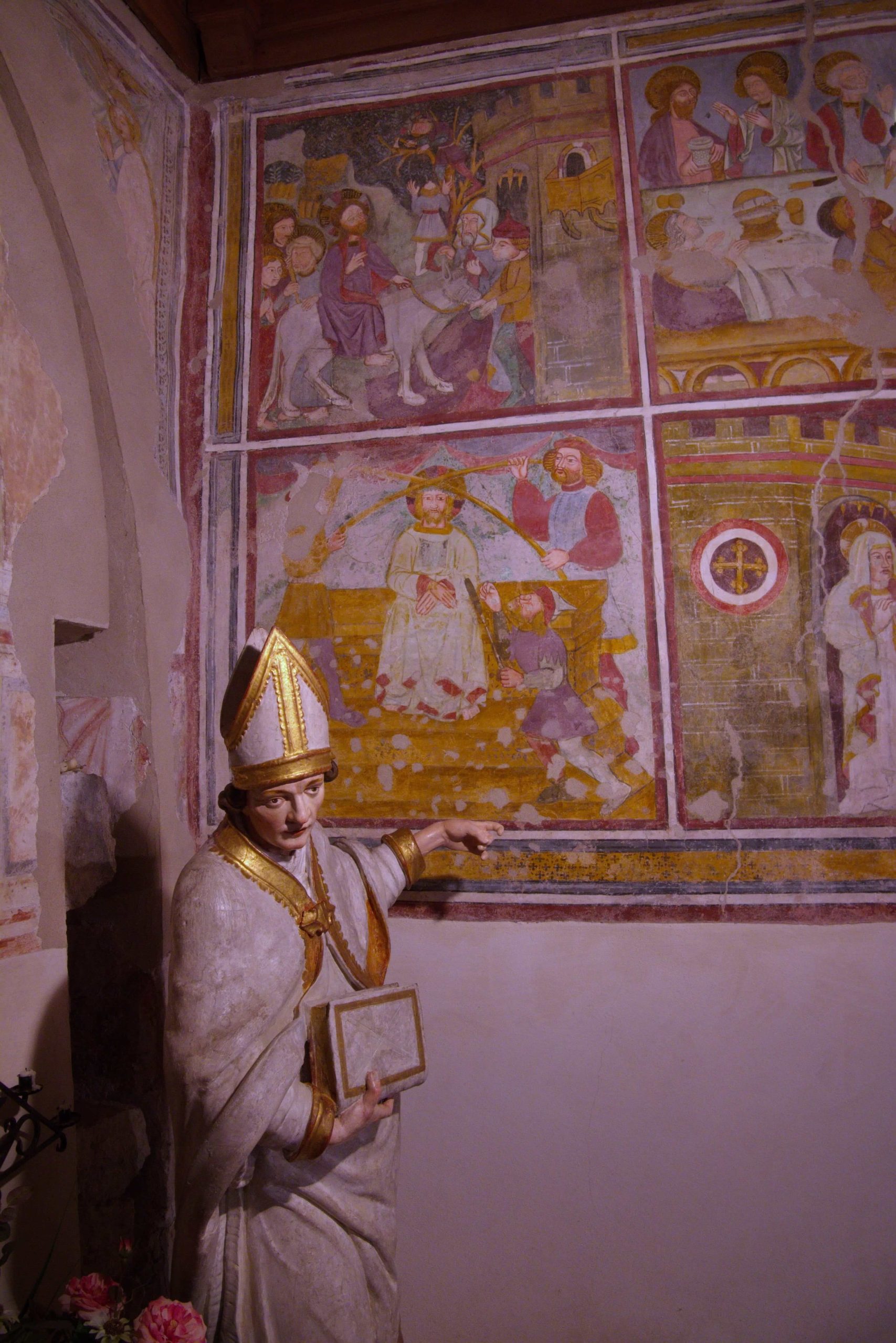 È altresì documentata la consacrazione della chiesetta a San Volfango, avvenuta nel 1432, epoca a cui risalgono gli affreschi interni con scene di Santi e della Passione di Cristo.