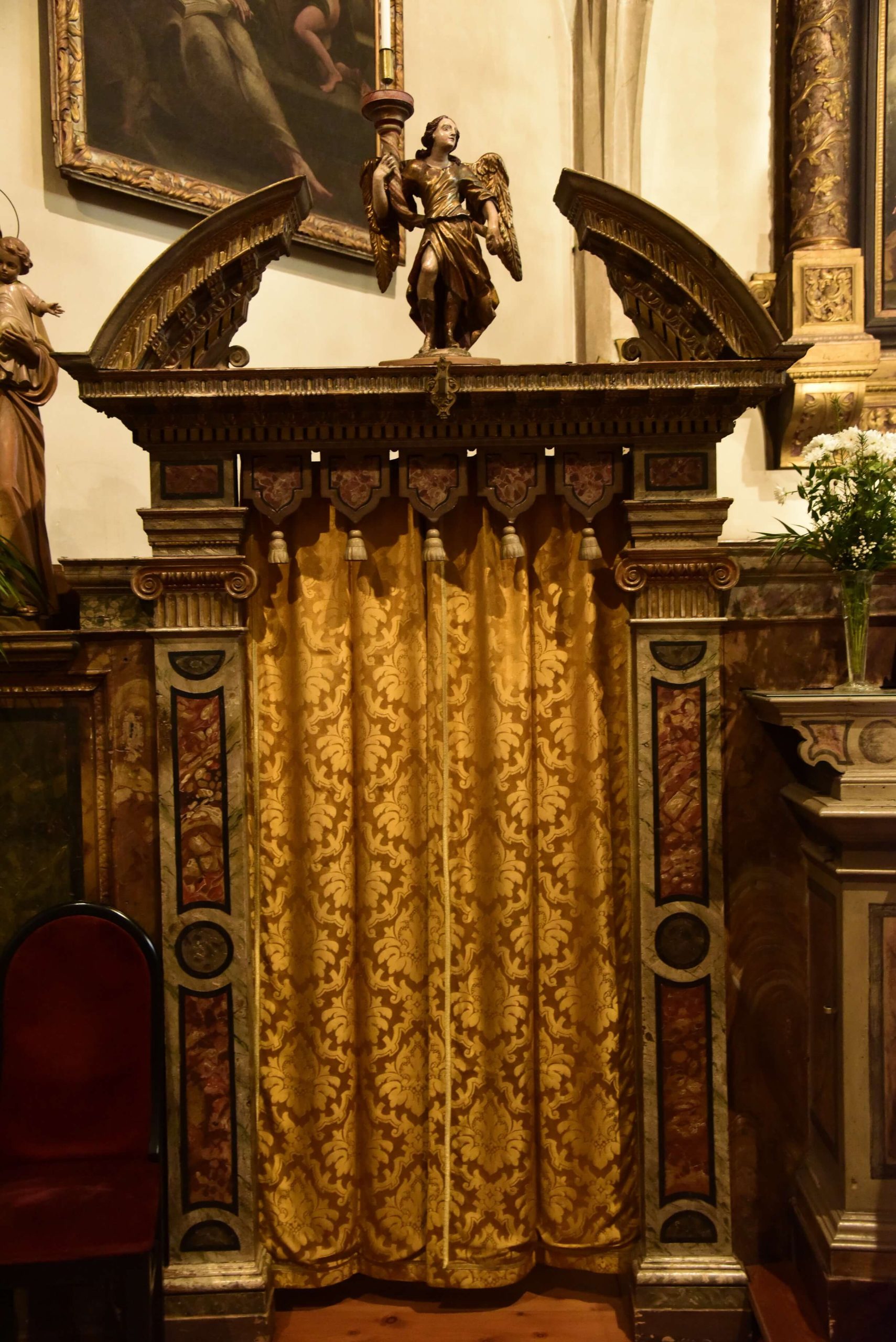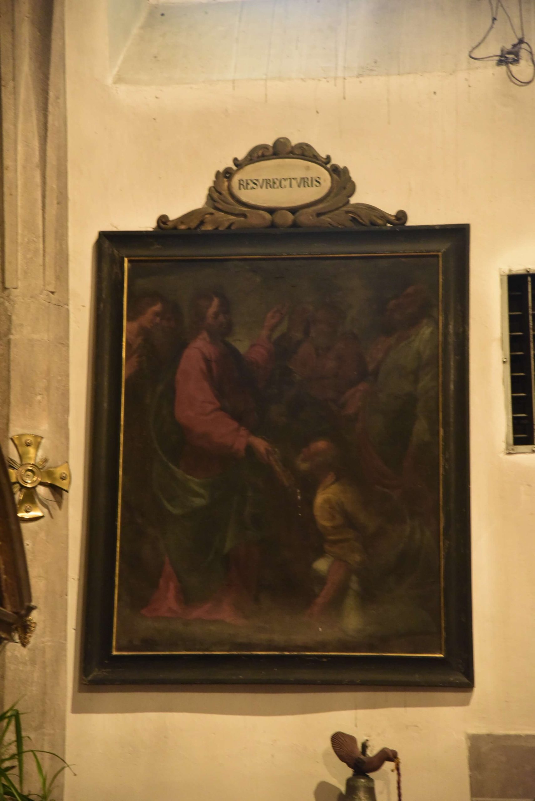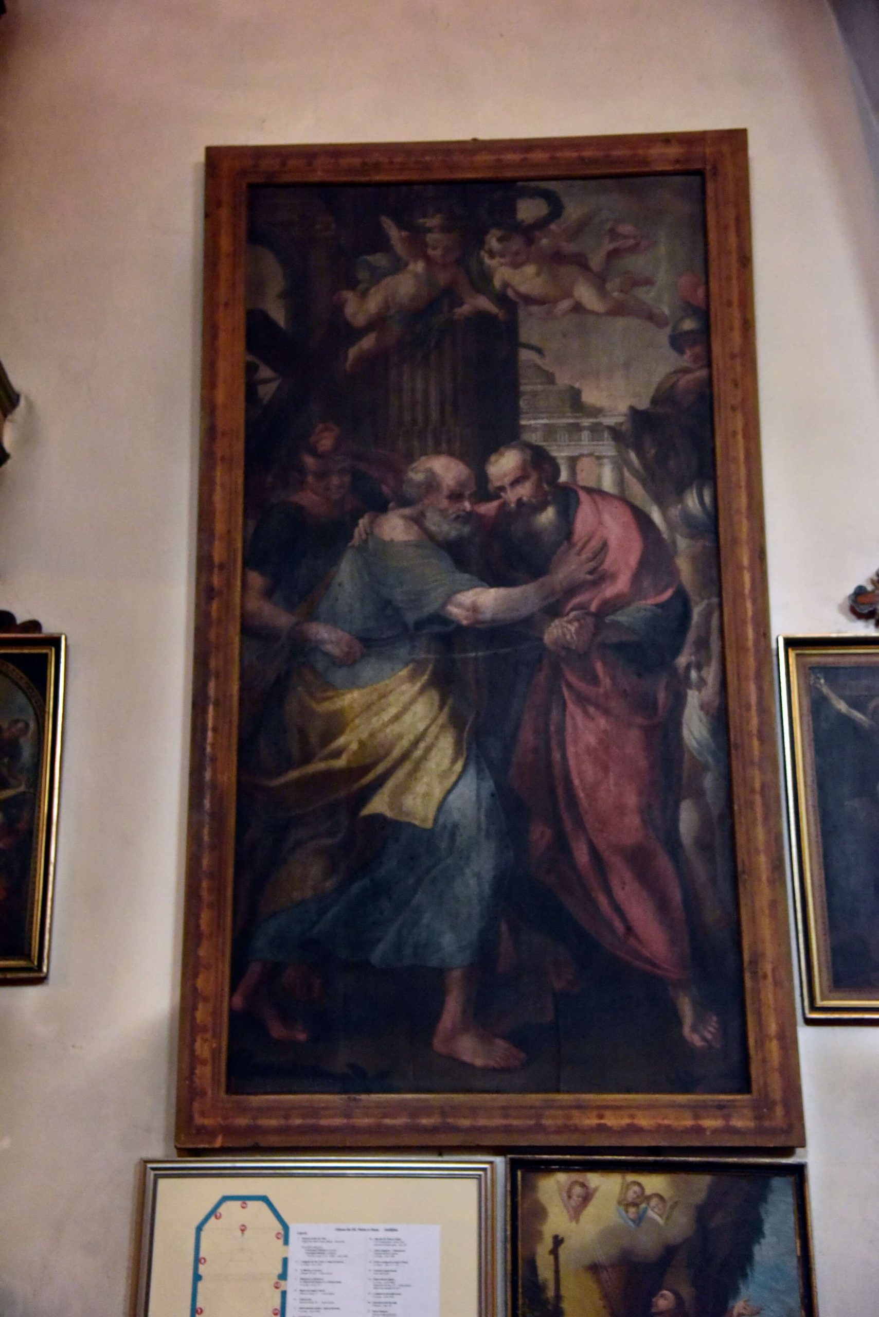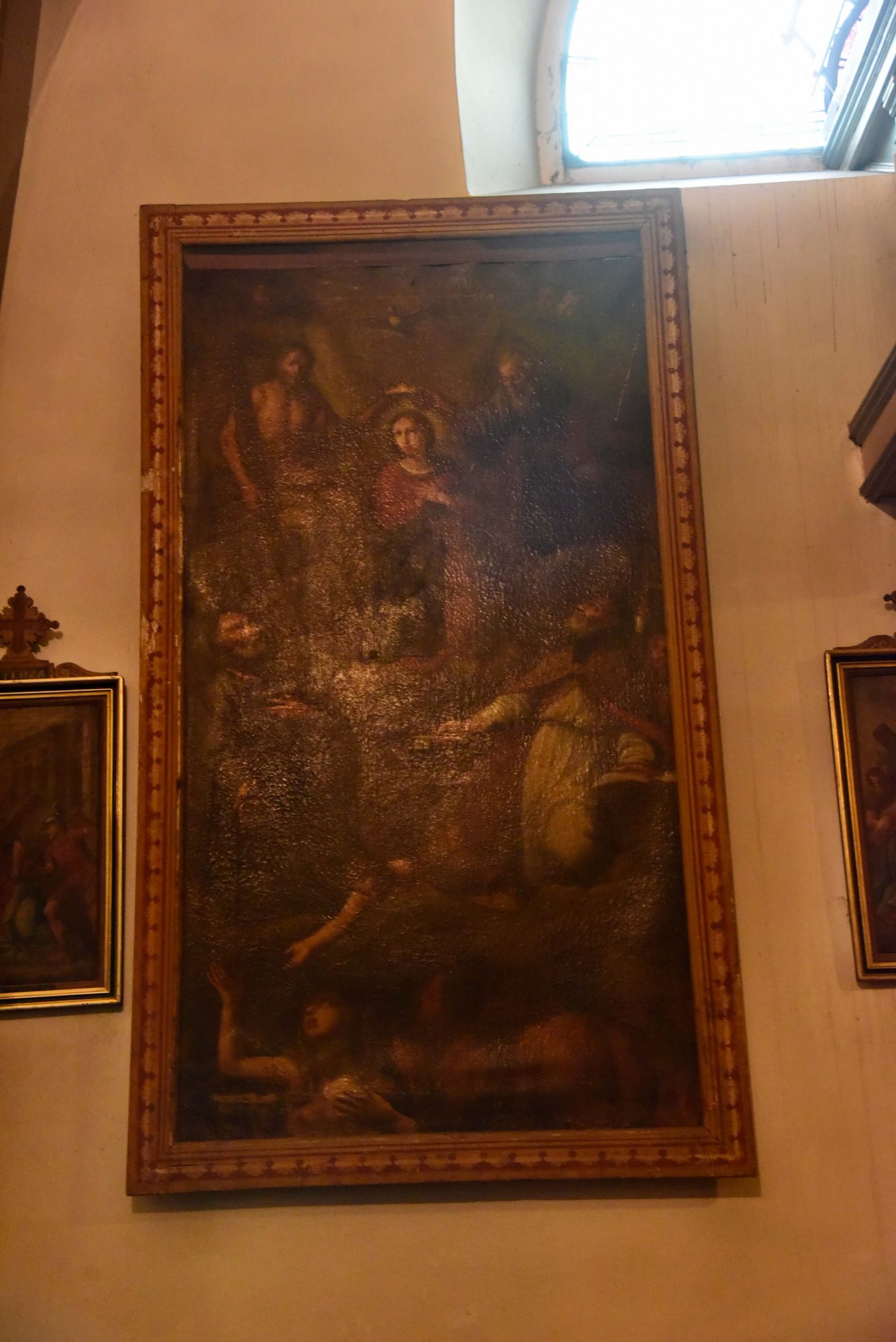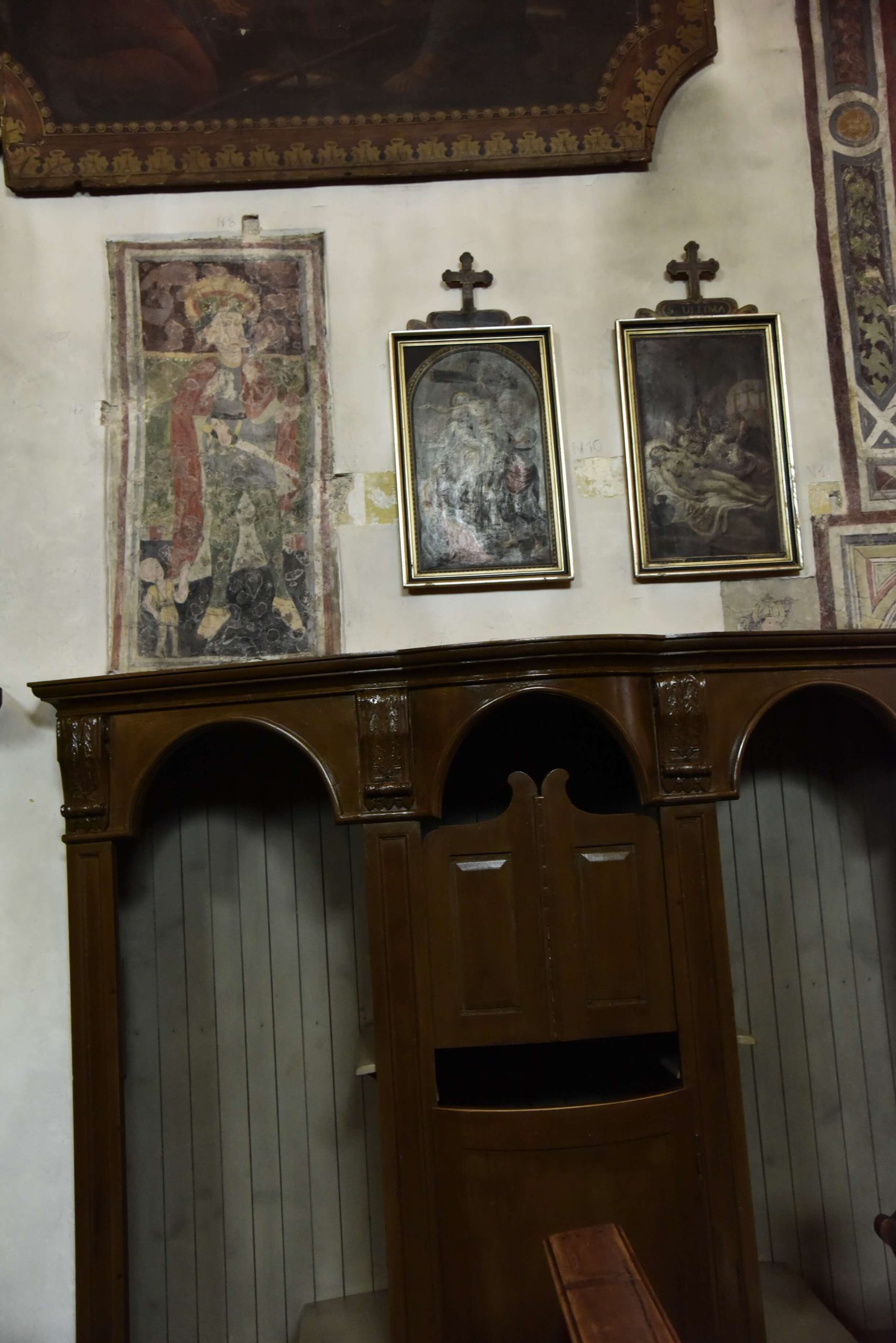 Gli affreschi sono presenti anche sull’fianco destro e presumibilmente, anche se nascosti dagli altari facevano parte di un unico ciclo pittorico in continuità, presumibilmente dipinto nel corso del XV secolo e scandito da cornici geometriche ora nascoste anche dagli altari della fine del XVII secolo.