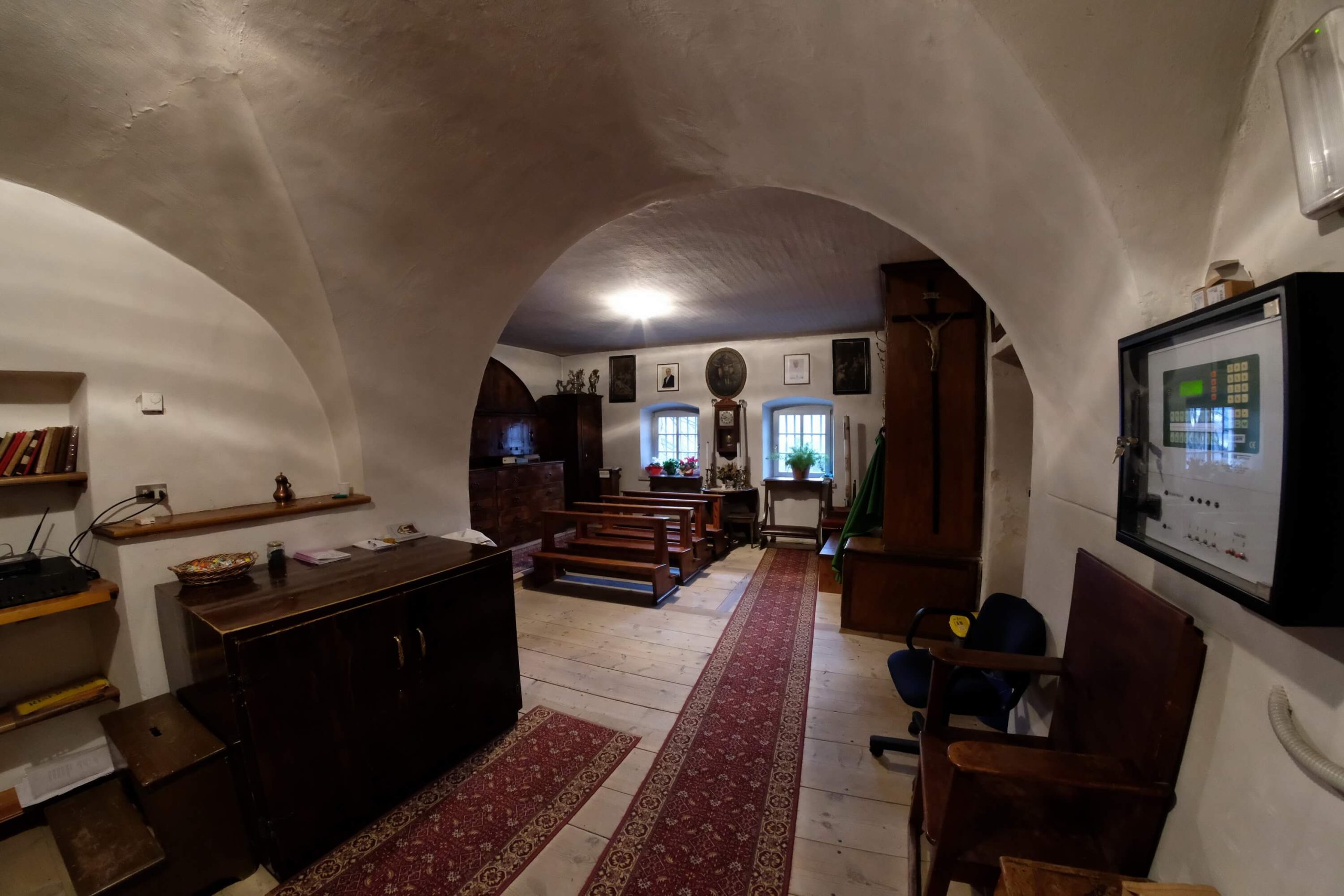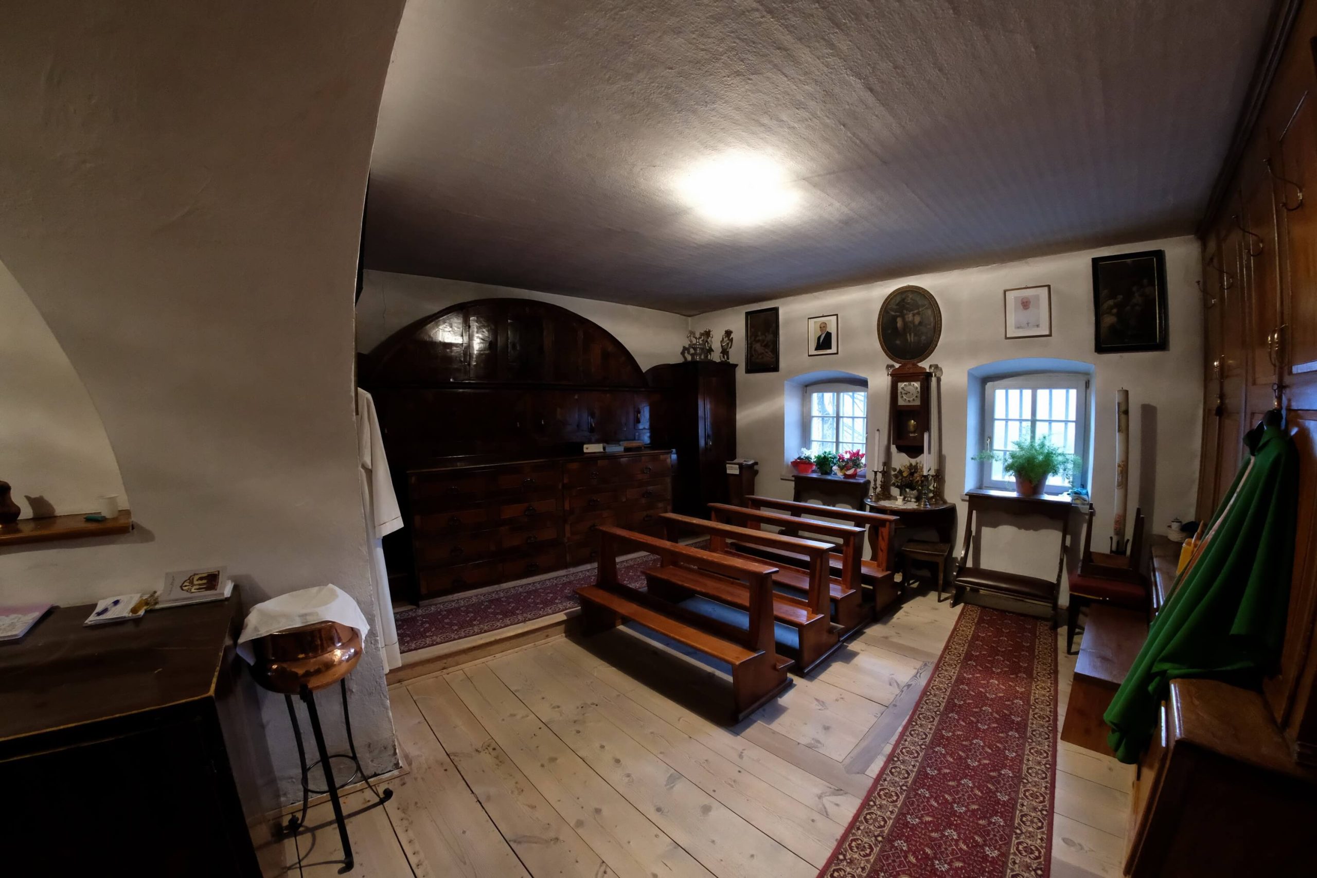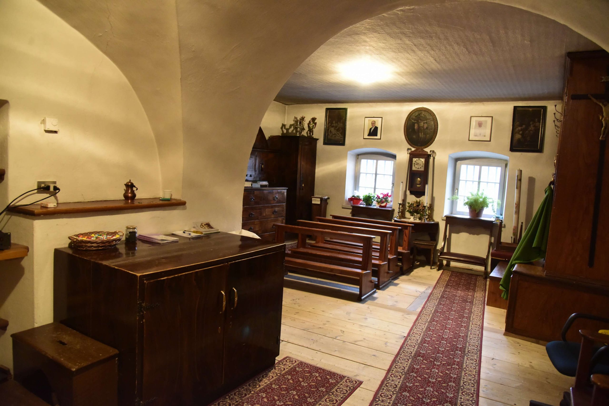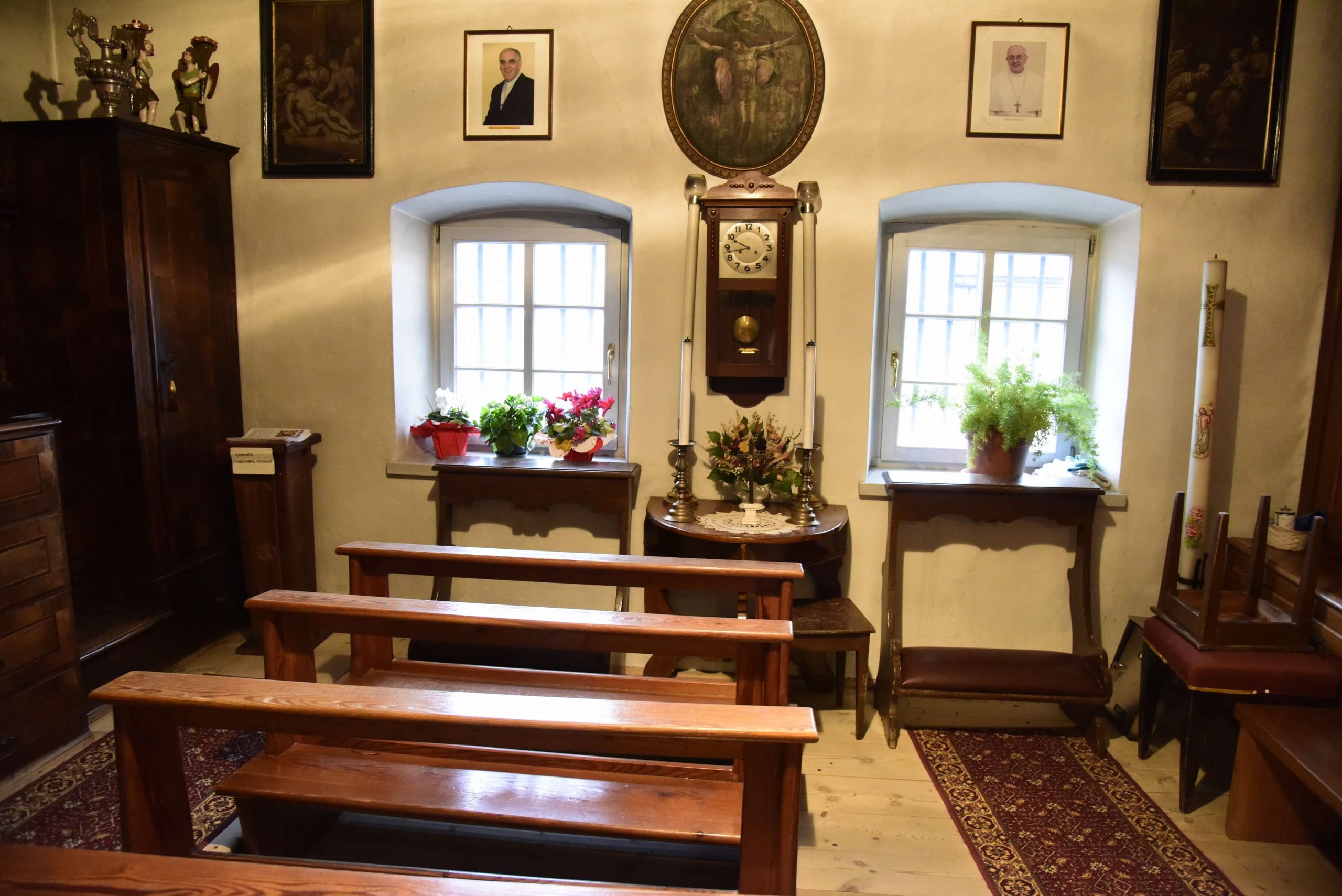 Molte sono le opere dei celebri pittori di scuola fiemmesi che adornano le pareti, primo fra tutti don Antonio Longo di Varena, Giuseppe Alberti e Francesco Sebaldo Unterpergher.