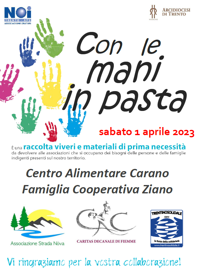 “Con le Mani in Pasta” è un progetto a livello diocesano, in valle nasce dalla collaborazione fra Caritas Fiemme e i Gruppi Giovani.