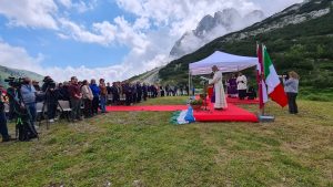 Al termine della Messa è stata scoperta una targa commemorativa delle vittime, apposta accanto alla statua in legno della Madonna dell’Aiuto ai piedi della Marmolada (foto): “Nel solco di questa roccia tanto amata, nella stretta del candido ghiaccio avete lasciato la vita. A voi il nostro più caro ricordo e la nostra preghiera”, recita la targa in memoria di Filippo Bari, Liliana Bertoldi, Erica Campagnaro, Tommaso Carollo, Pavel Dana, Paolo Dani, Gianmarco Gallina, Davide Miotti, Martin Ouda, Manuela Piran e Nicolò Zavatta.