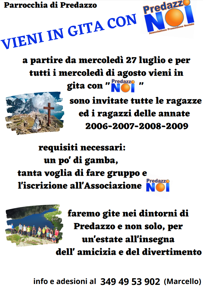 Parrocchia di Predazzo a partire dal mercoledì 27 luglio e per tutti i mercoledì di agosto.